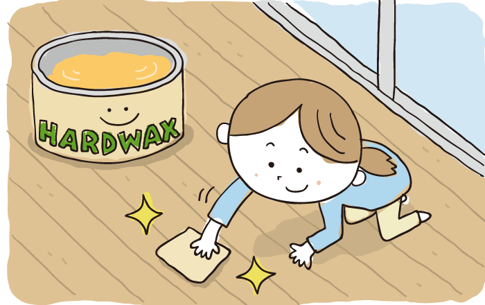 セラックやダンマル等、樹木や昆虫等の「天然樹脂」を主成分とし、木材の調湿機能を残しながらも塗膜を造り素材を保護するため耐水性に強い。 - ワックス系(塗膜保護)
