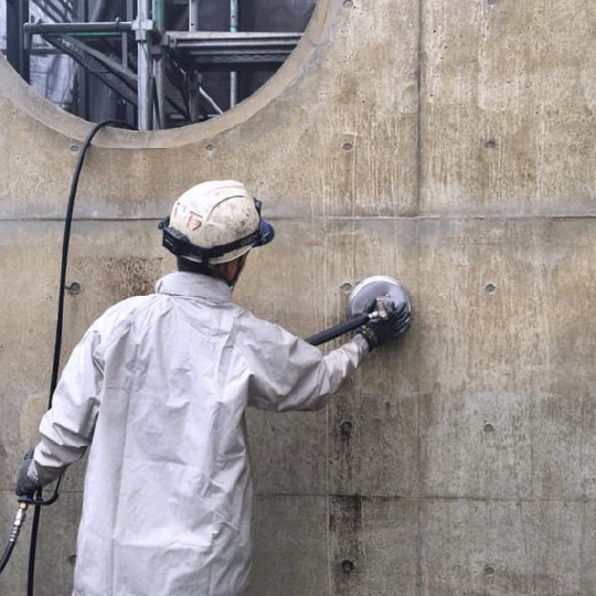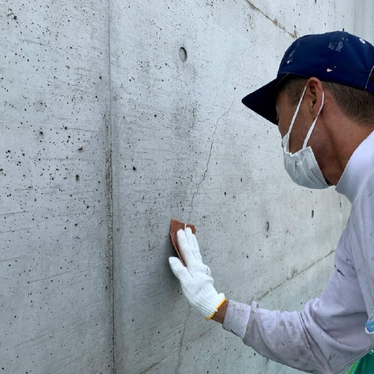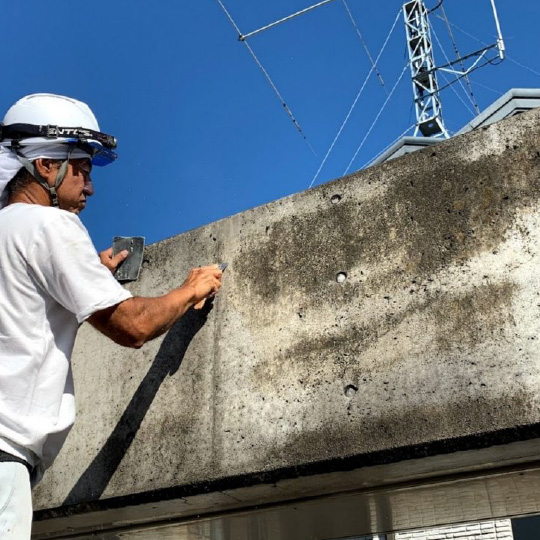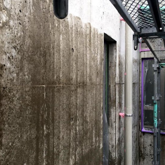 独特の風合いが美しい打放しコンクリートの壁ですが、経年により爆裂や雨だれ、カビの汚れがコンクリート内部に染み込み、洗浄では落としきれない場合があります。