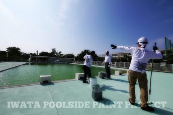 夏、60度近い暑さで、子供たちが裸足で歩くと火傷をしてしまいそうになるプールサイド。塗魂ペインターズに、何とかならないでしょうかとの問い合わせをいただき、敷地内の更衣室やトイレと合わせて塗装させていただくこととなりました。