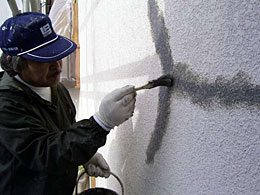 外壁でもモルタル壁(モルタル吹き付け仕上)のヘアークラックに適応される下地処理です。